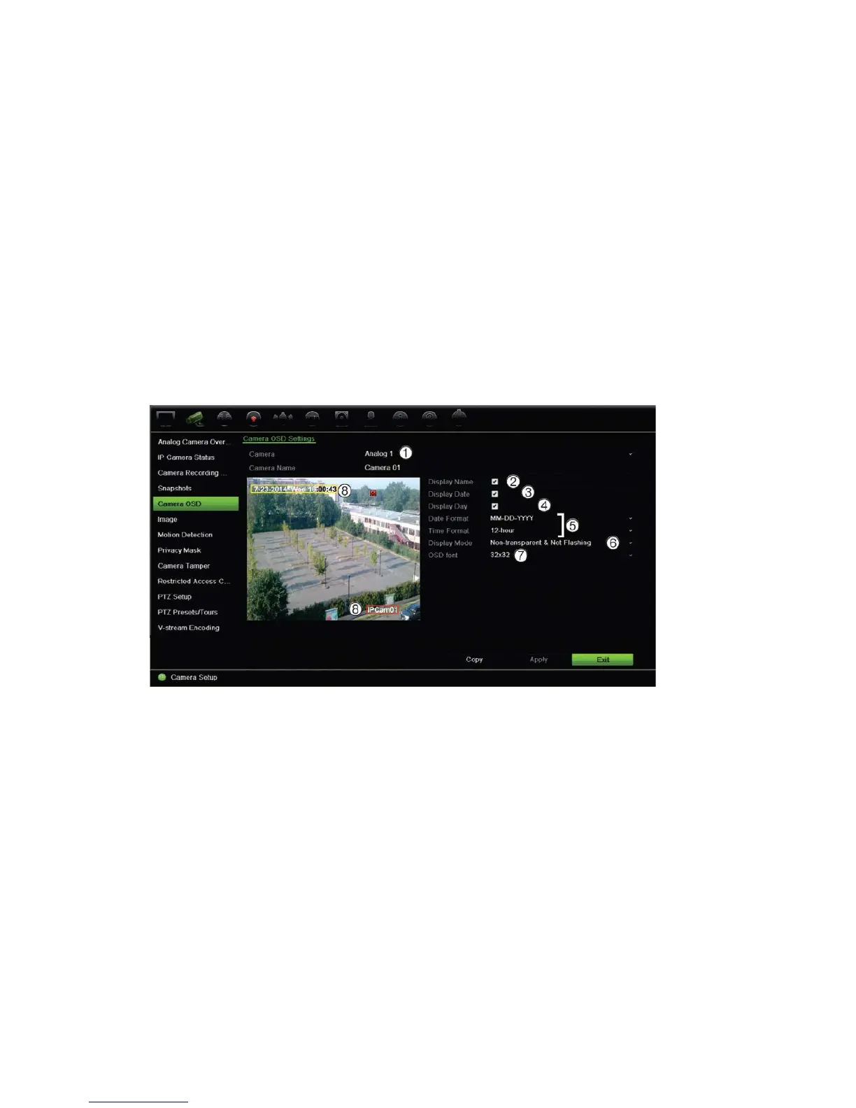 1. From the menu toolbar, click Camera Setup > Camera OSD.