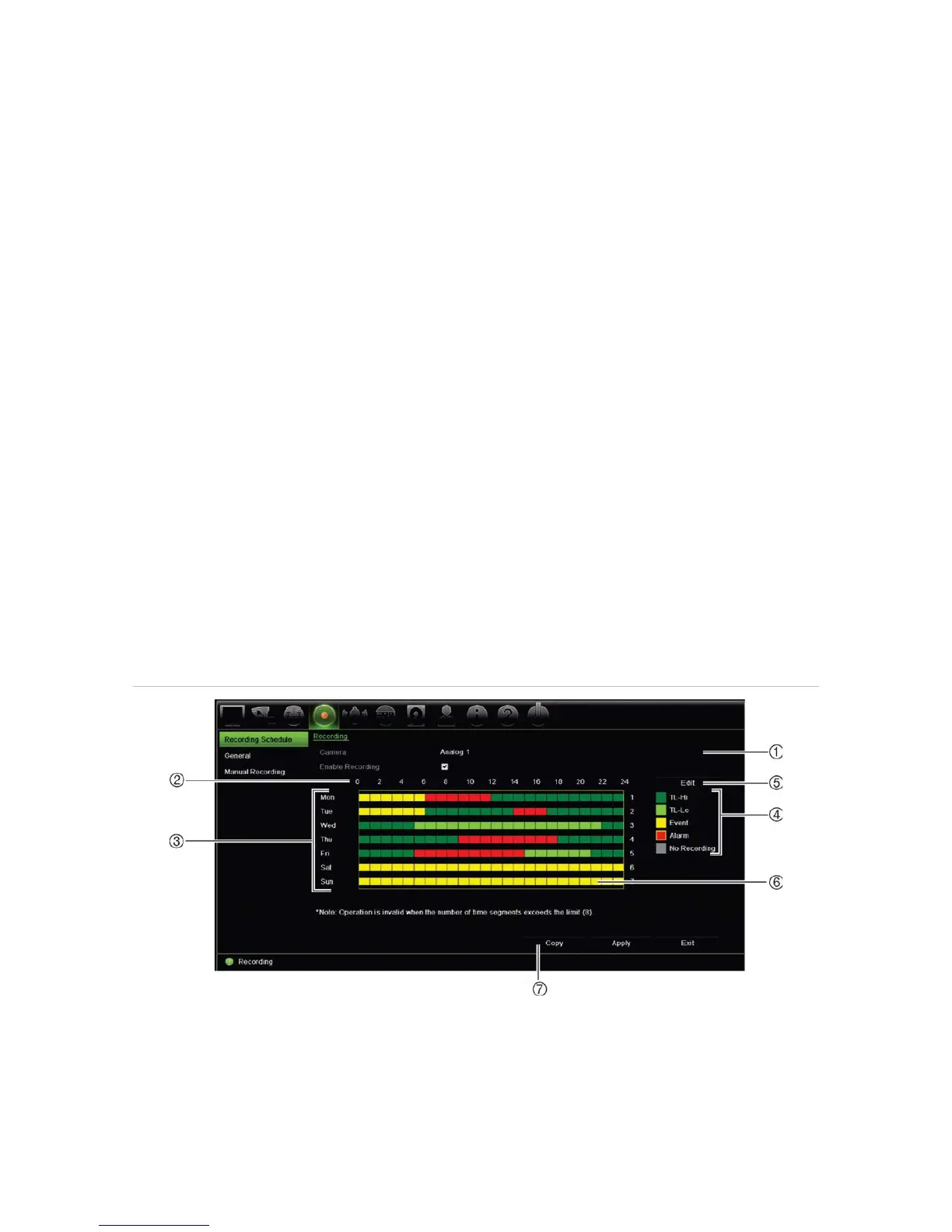 Figure 25: Description of the recording schedule window