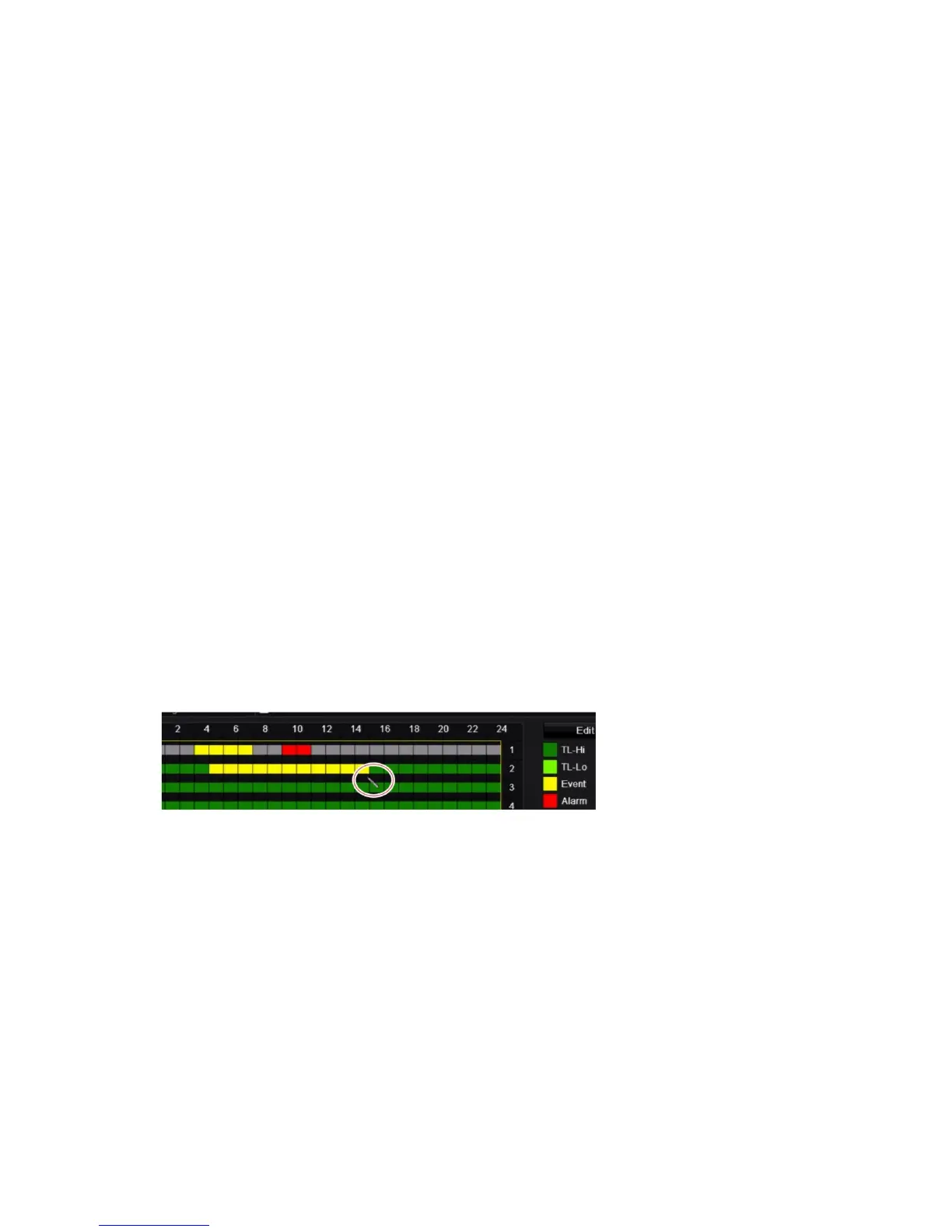 6. Timeline. There is a 24-hour time line for each day. Up to eight recording periods can be scheduled