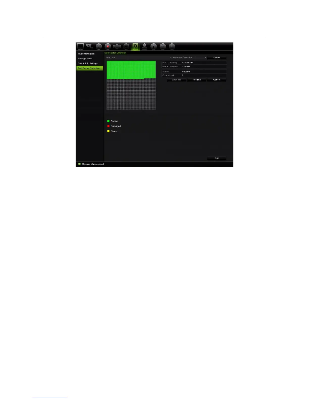 1. From the menu toolbar, click Storage Management > Bad Sector Detection.