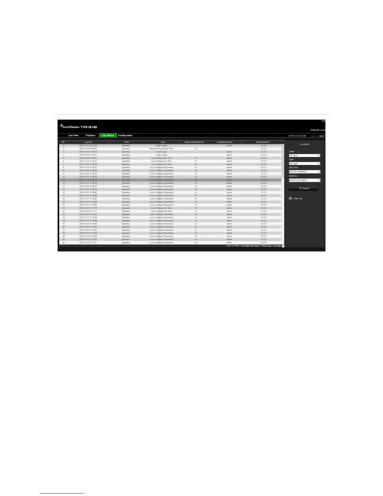 To search for logs, click Log on the menu bar, select a log type, specify a date and time