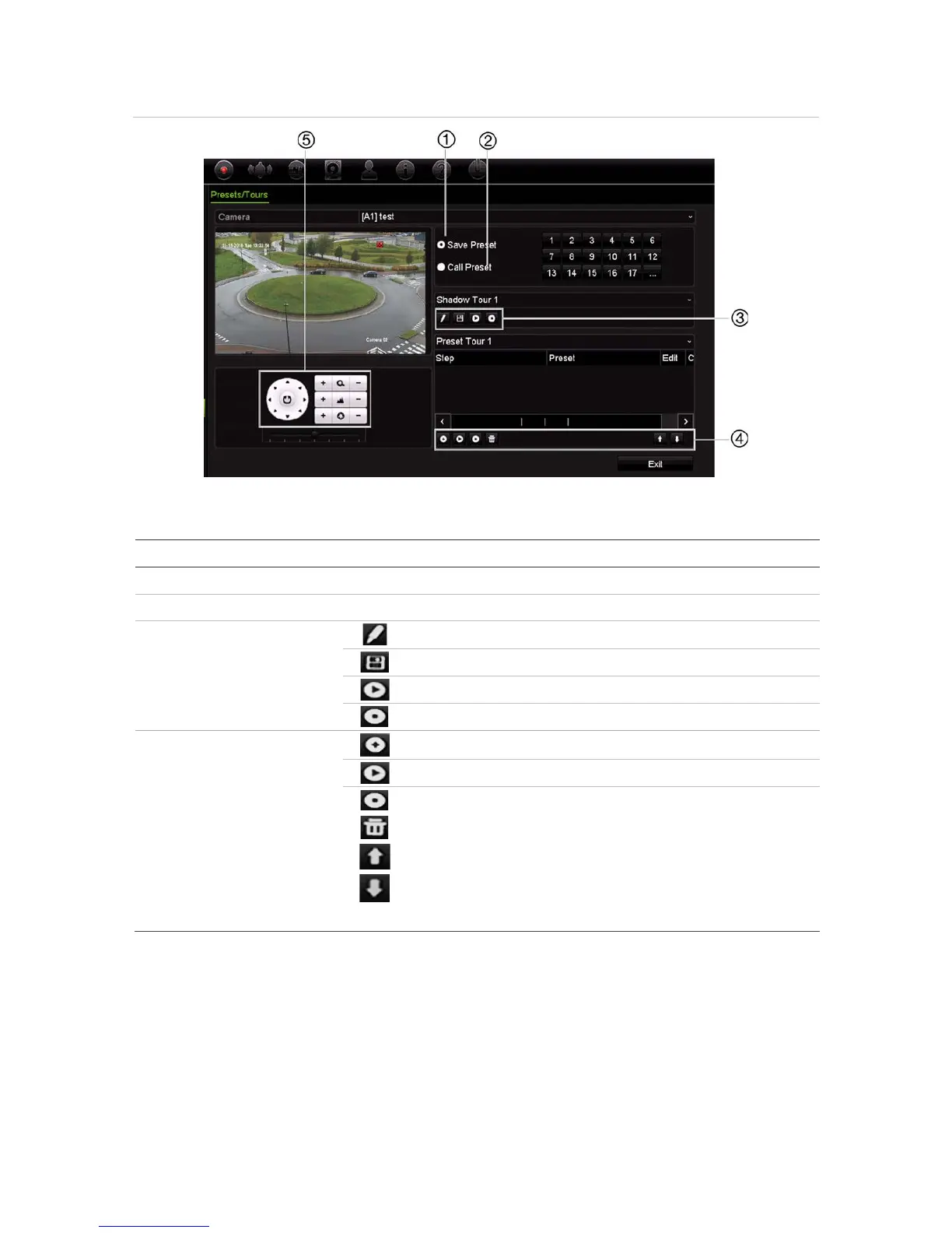 Table 13: Description of the PTZ Presets/Tours configuration window