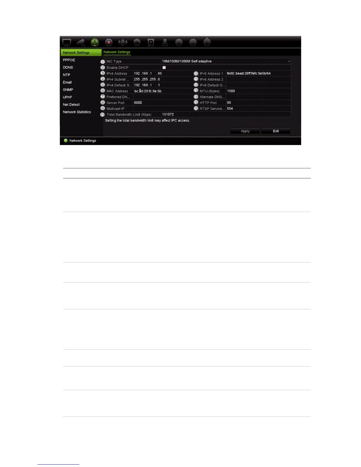 Default value is 10/100M self-adaptive for the 4 channel recorder and