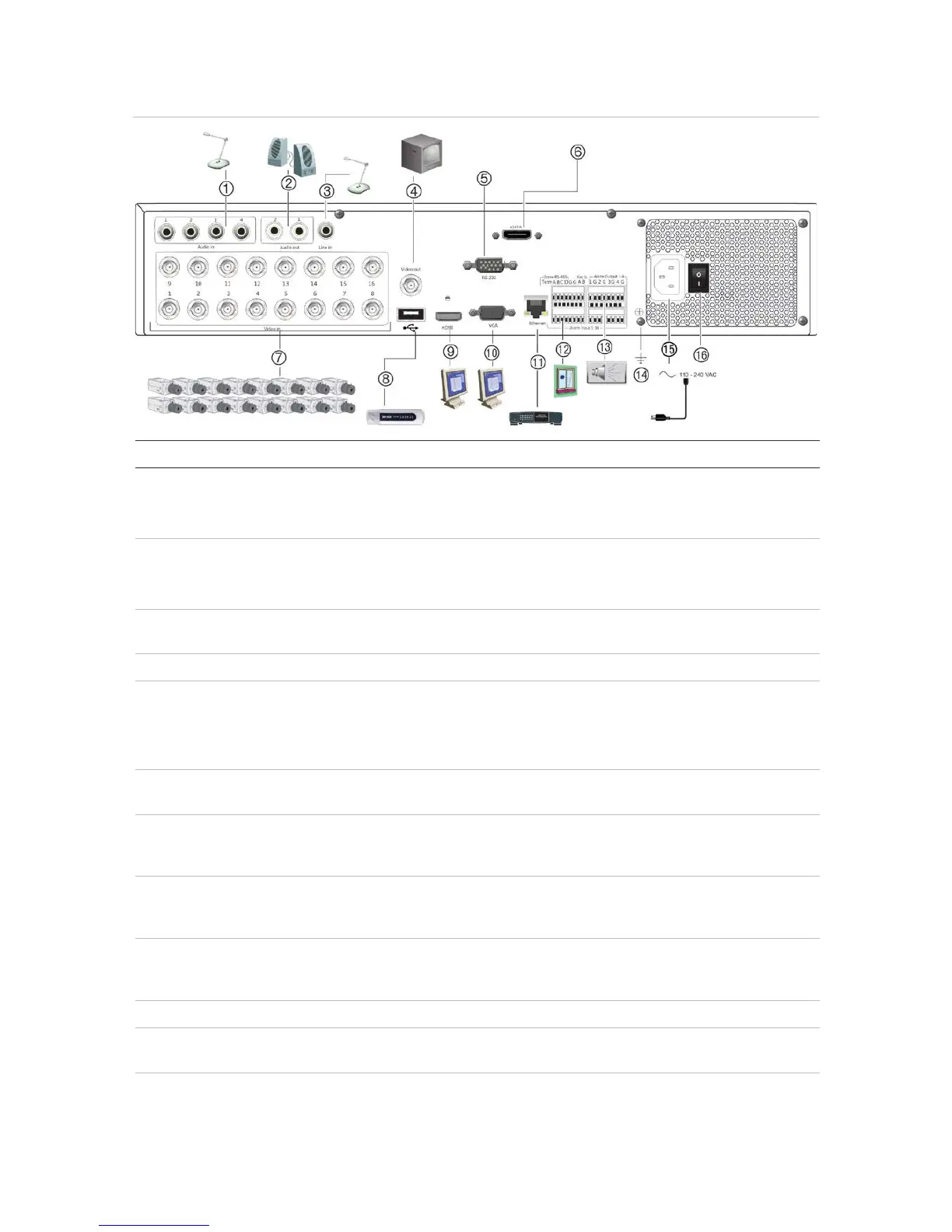 Figure 1: TVR 44HD back panel connections (16-channel model shown)
