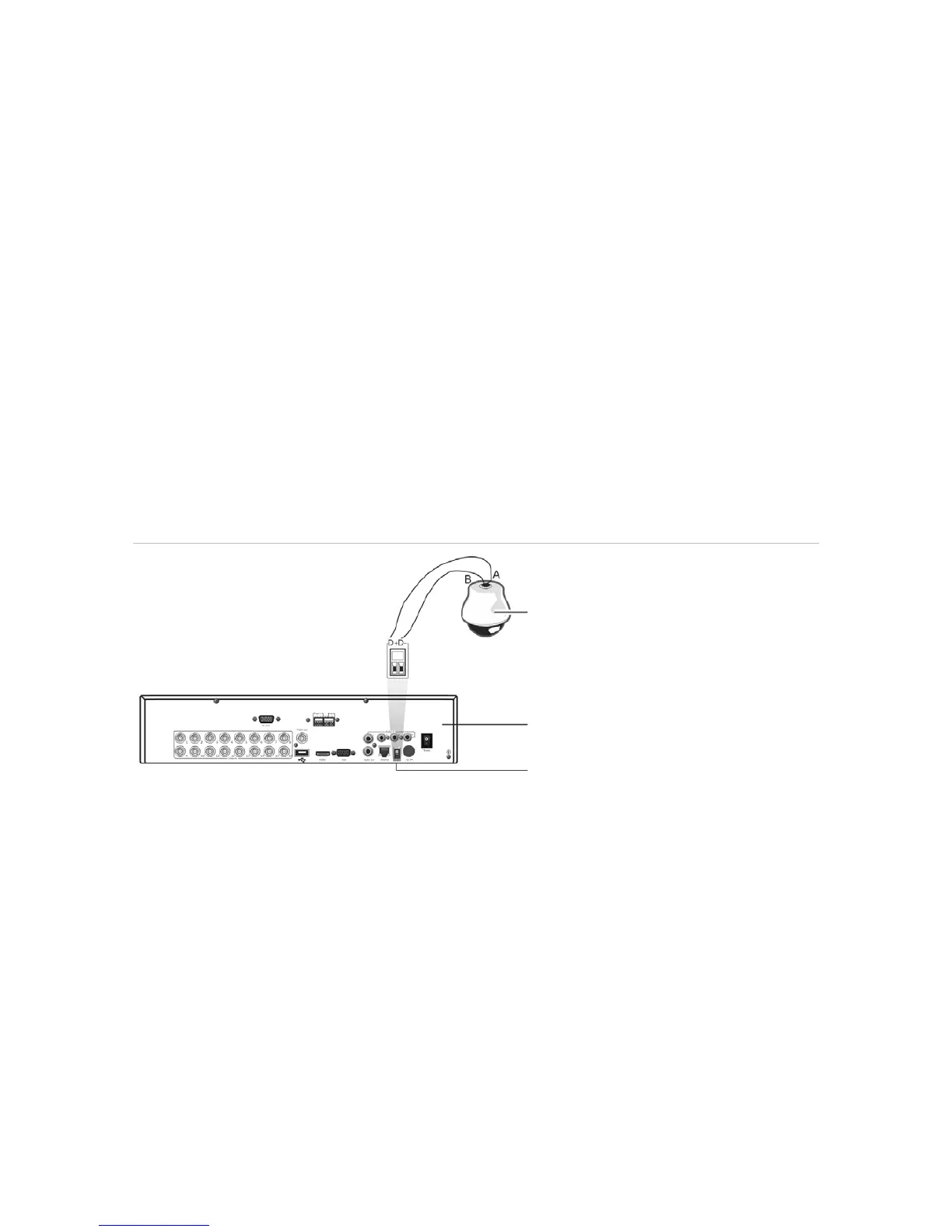 Figure 37: Connecting a PTZ dome camera to the recorder for control over the network