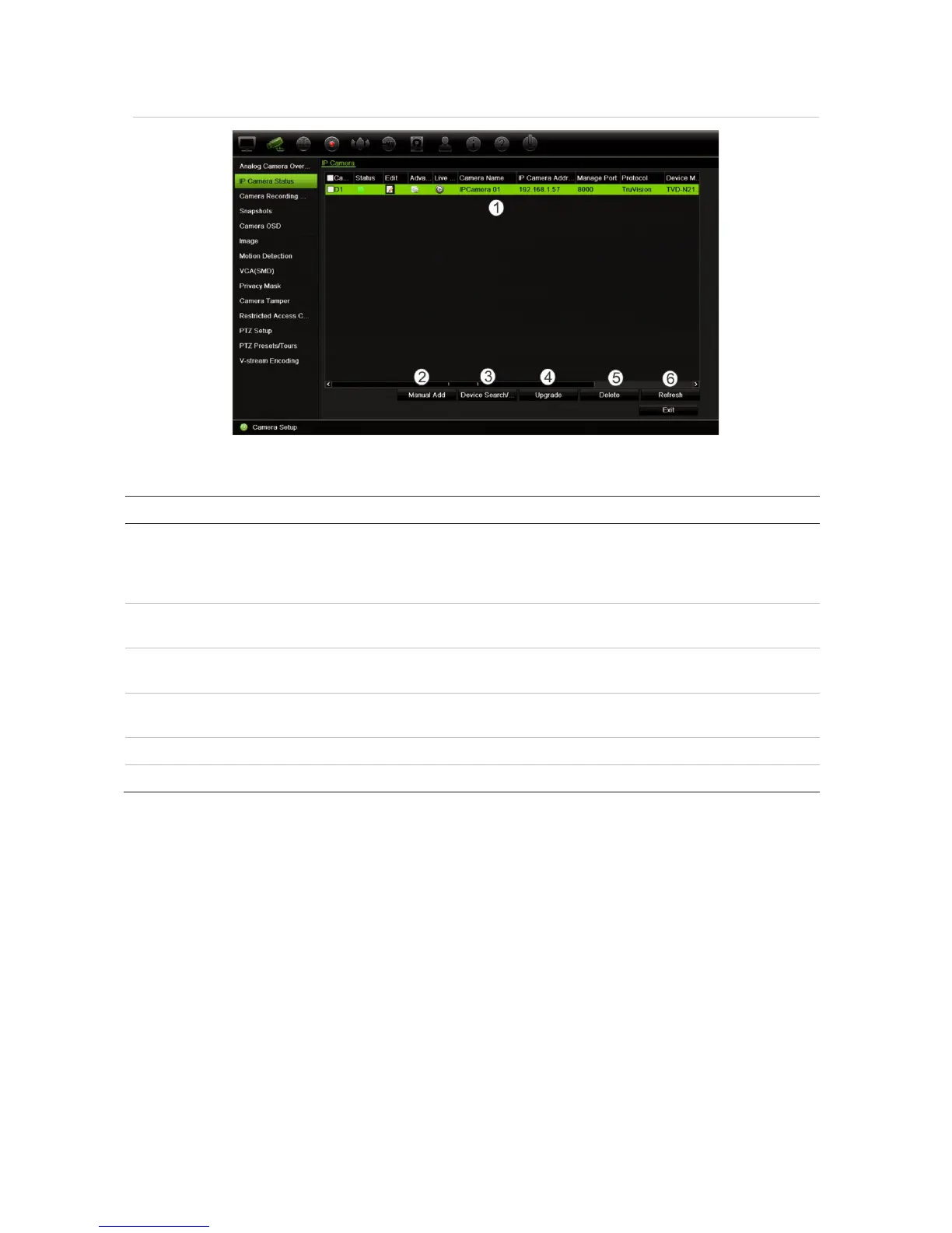Search/Add Search the network for available IP cameras. Add an IP camera to the recorder