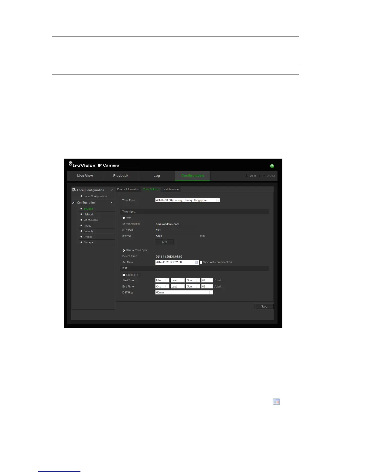 1. Click Configuration > System > Time Settings.