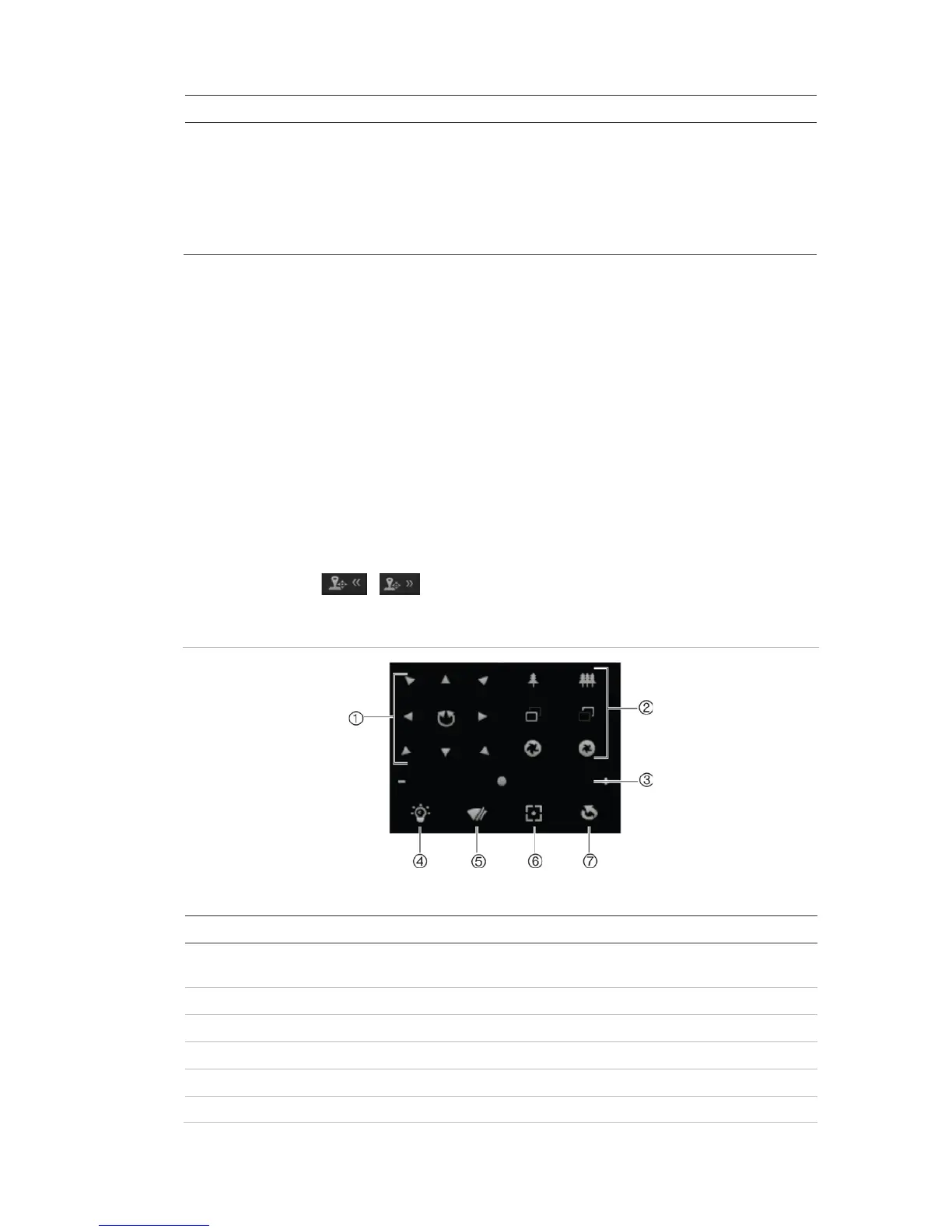 Table 8: Description of the PTZ control panel