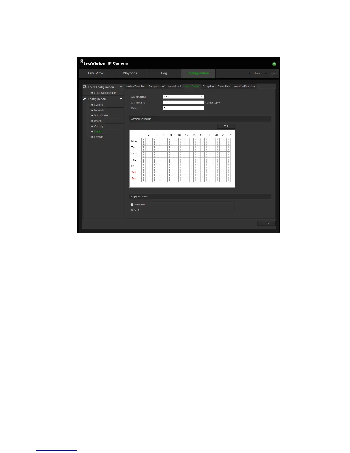 4. Click Edit to set the arming schedule for the alarm input. See “To set up