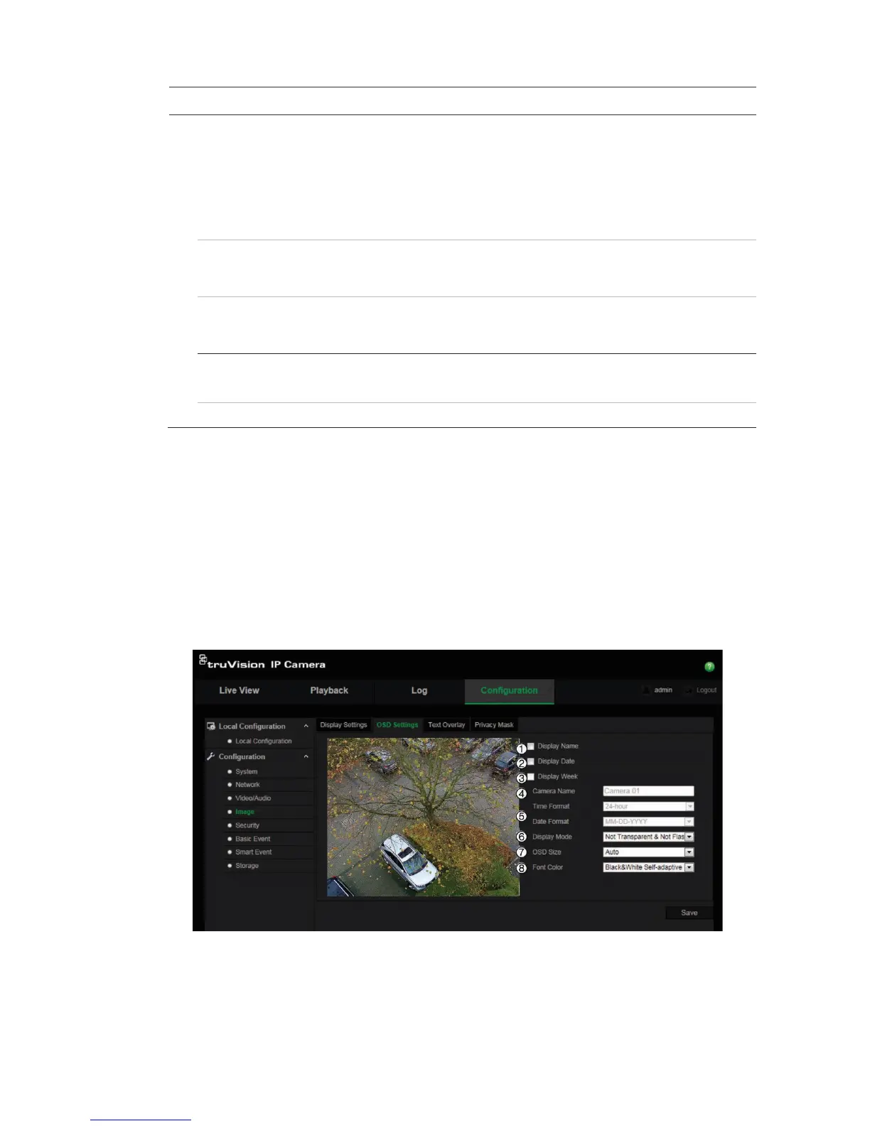 2. Check the Display Name box (1) to display the camera’s name on screen.