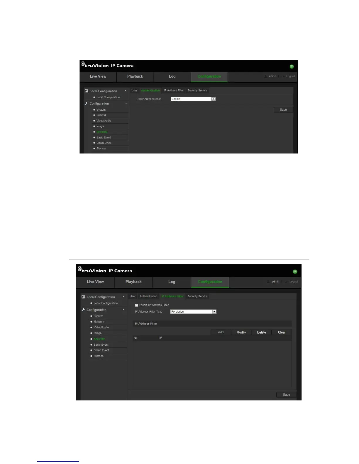 Note: If "RTSP Authentication" is disabled, the user can still see the live view