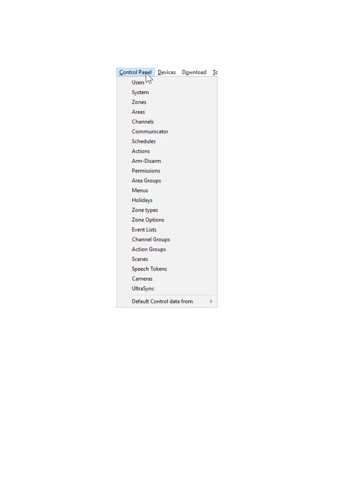 Control Panel Menu