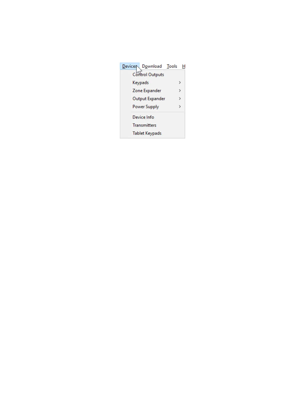 Devices Menu