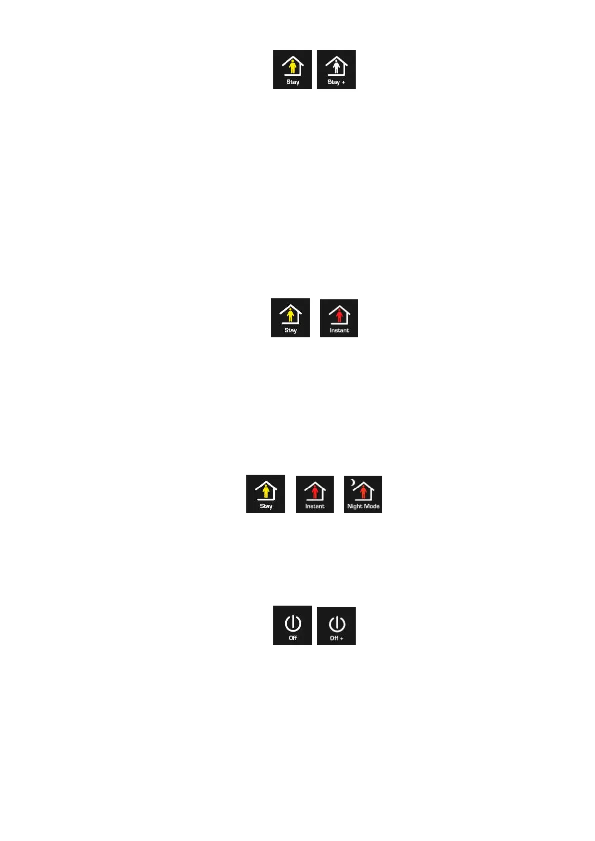 To arm in Night Mode touch the Stay or Stay + button a total of three times until
