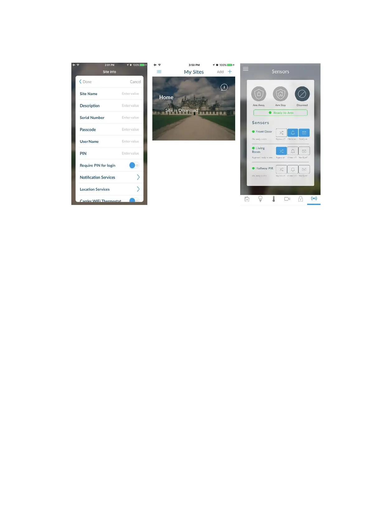 The UltraSync+ app requires any user name and PIN code to log in to the