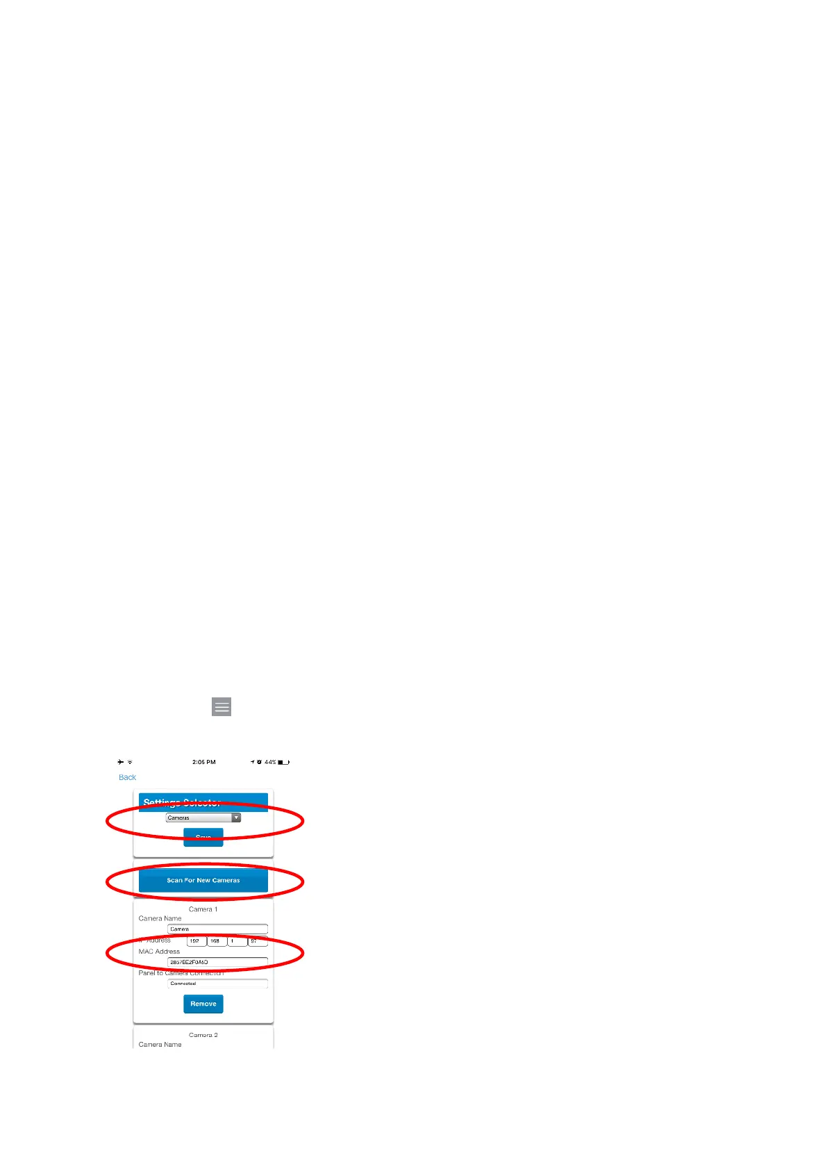 8. Select Cameras under the Settings Selector.