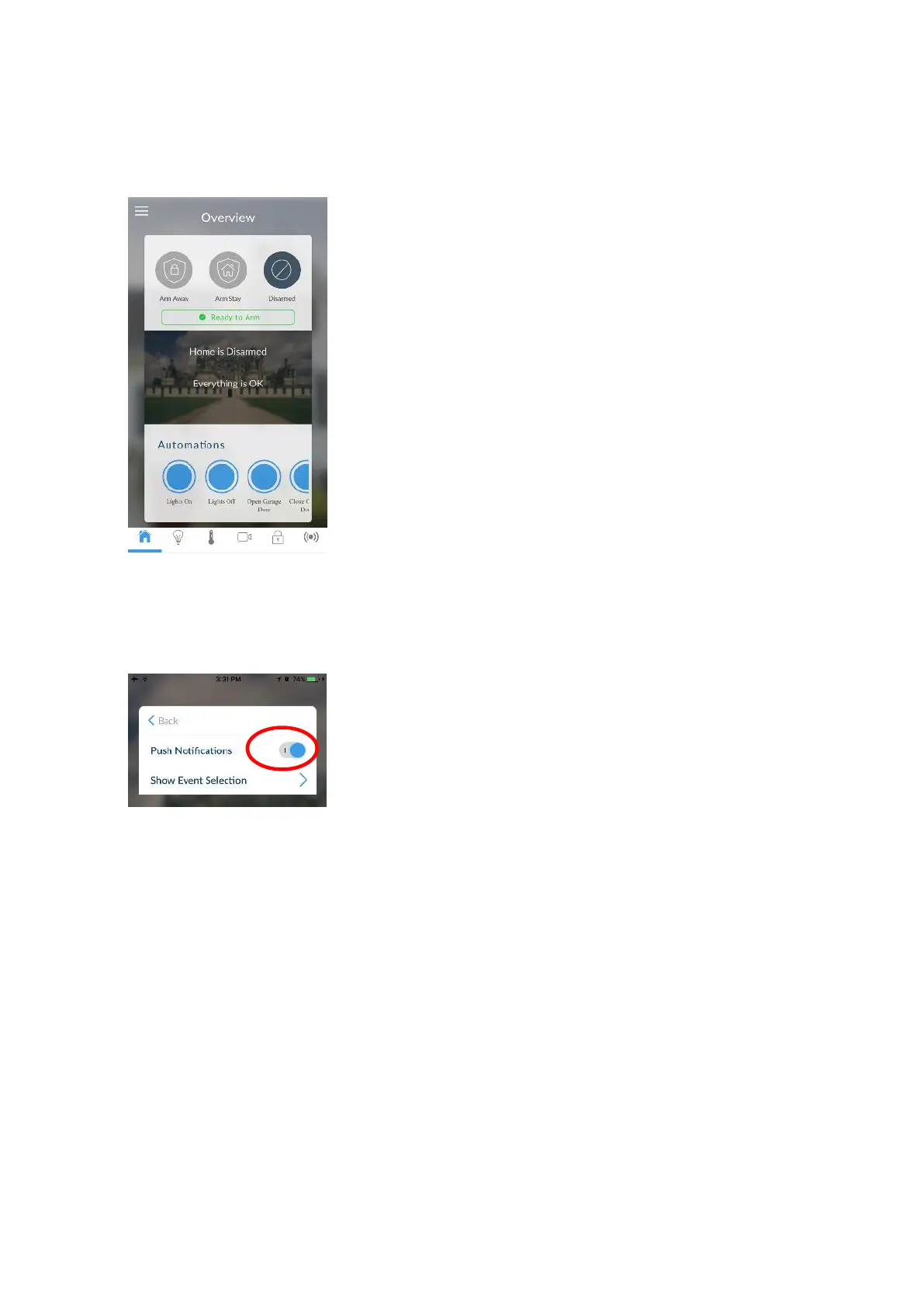 • Check you can see the Arm/Disarm screen of the device you wish to receive