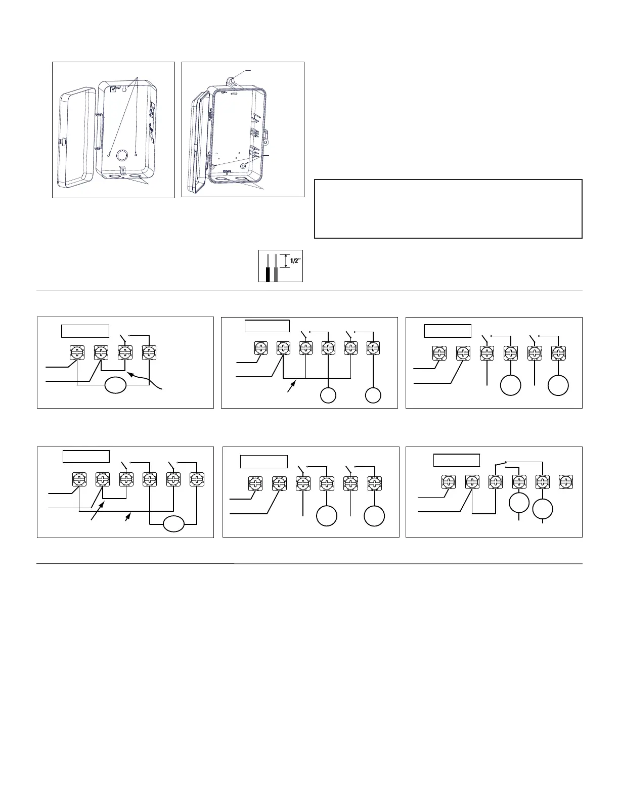 8. Strip the supply and load wires to 1/2”. Use #18 -