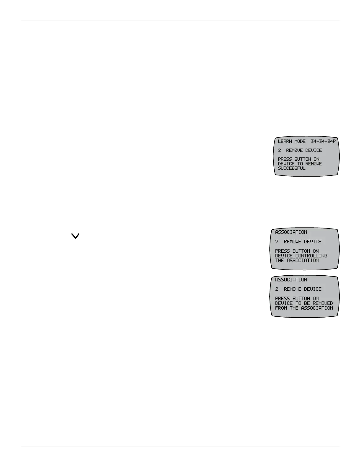 2. Press 2 REMOVE DEVICE. The screen displays PRESS BUTTON ON