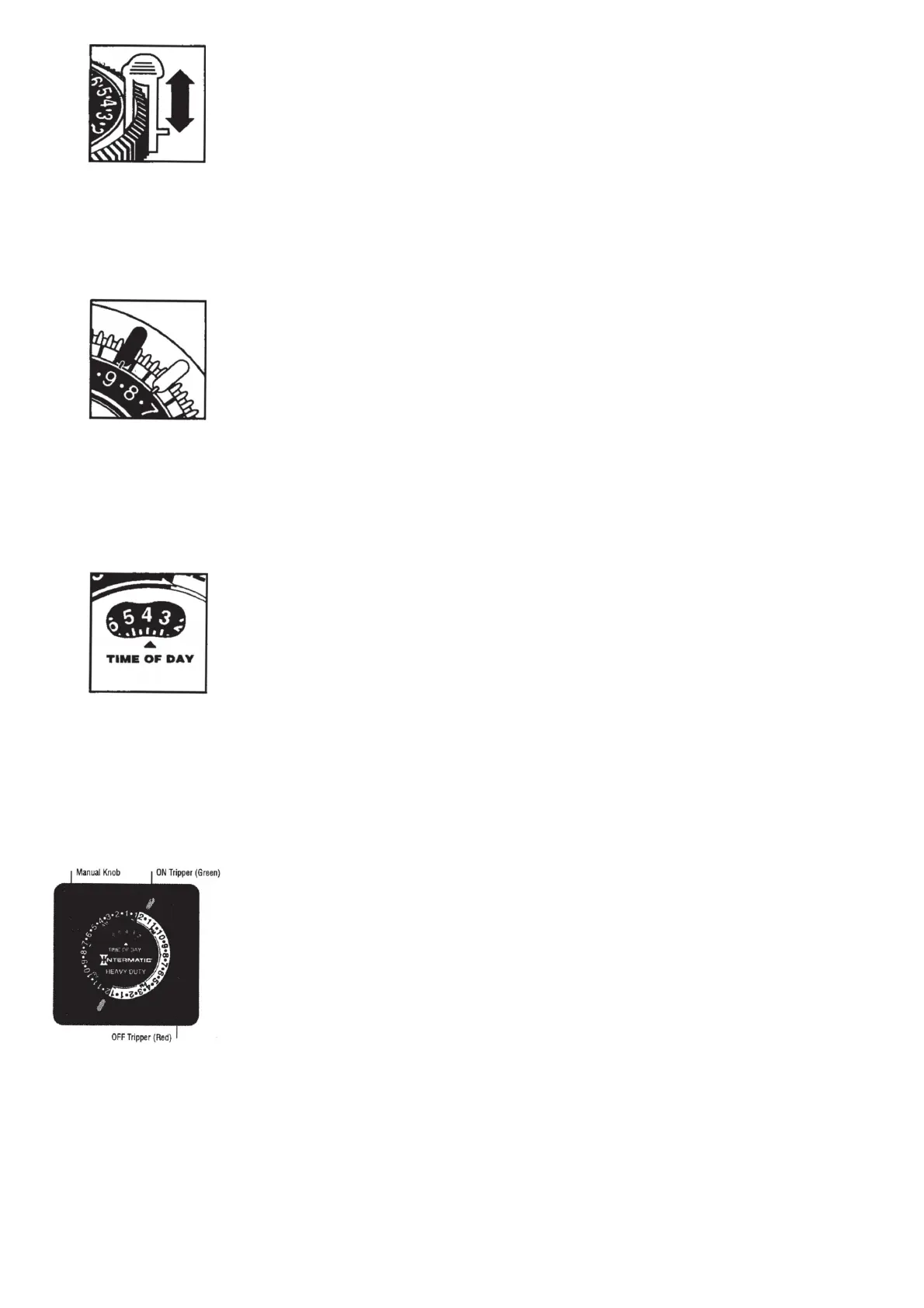 1. Insert ON (green) and OFF (red) trippers into dial at desired ON and OFF times (Fig. 1). Be sure trippers are firmly