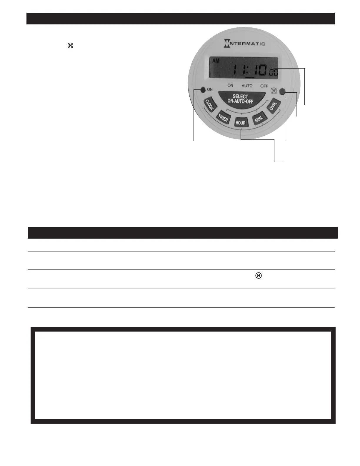 INTERMATIC INCORPORATED WILL NOT BE LIABLE FOR INCIDENTAL OR CONSEQUENTIAL DAMAGES. THIS WARRANTY IS IN LIEU OF ALL OTHER EXPRESS OR