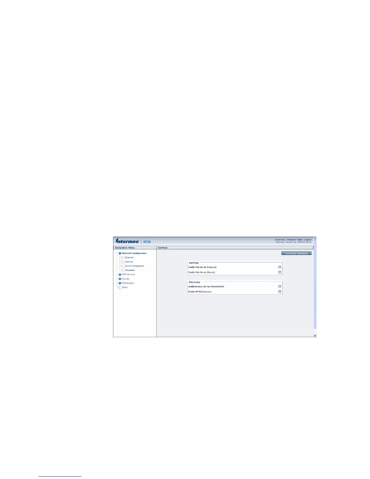 1 From the menu, click Network Configuration > Services. The