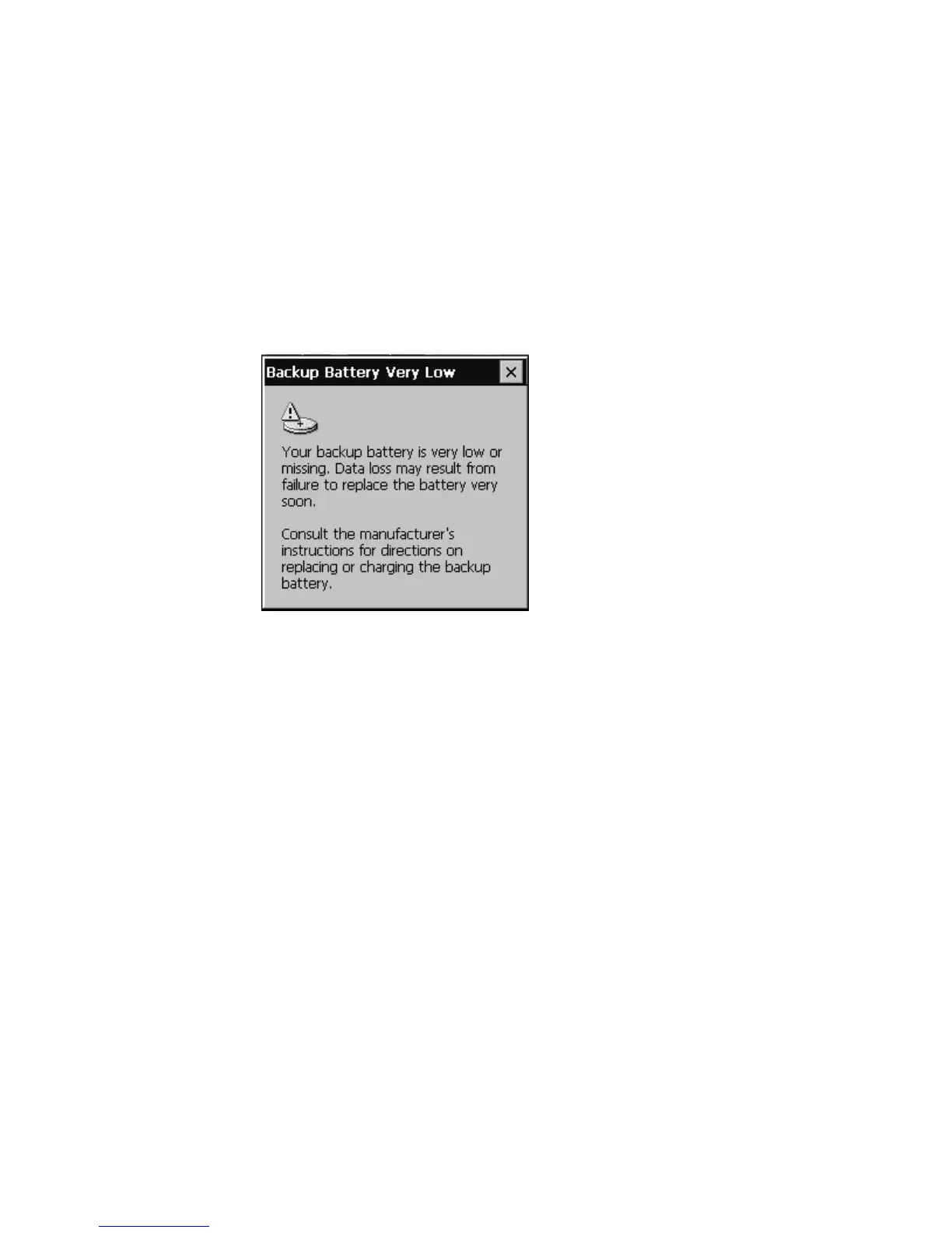 If the Backup Battery Very Low dialog box continues to appear