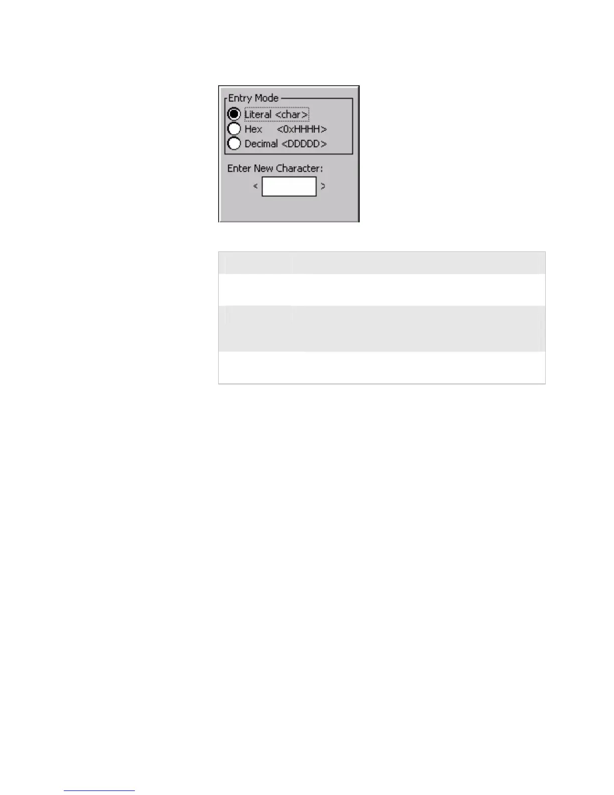 7 Select the Entry Mode for the Unicode character.