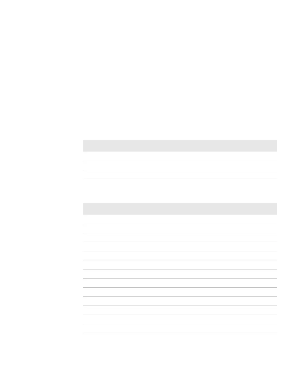 The following tables list the default values of the configuration