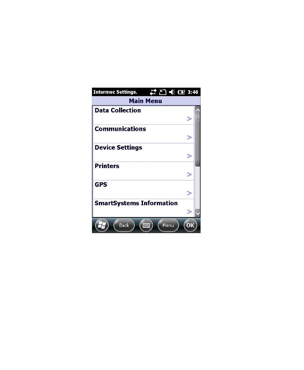 • Tap Start > Settings > System > Intermec Settings. The Intermec