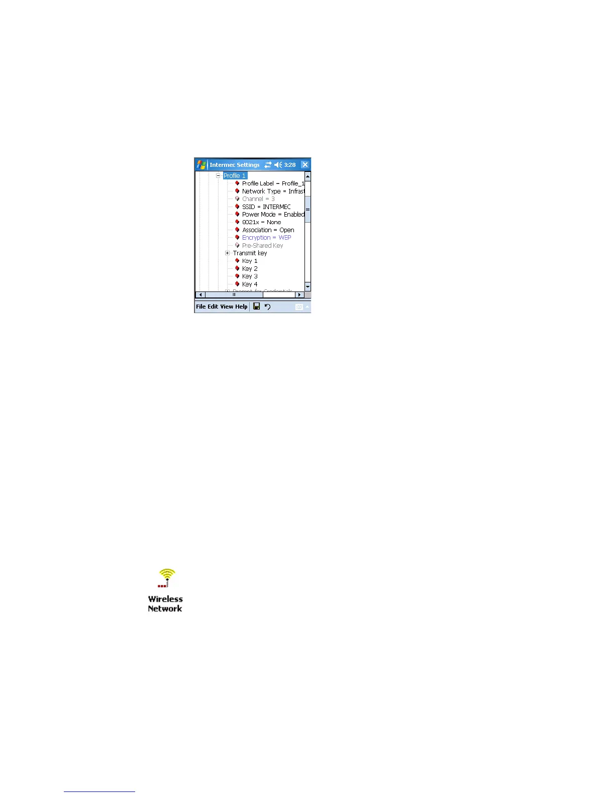 2 Open Intermec Settings. Tap (+) to expand Communications > 802.11
