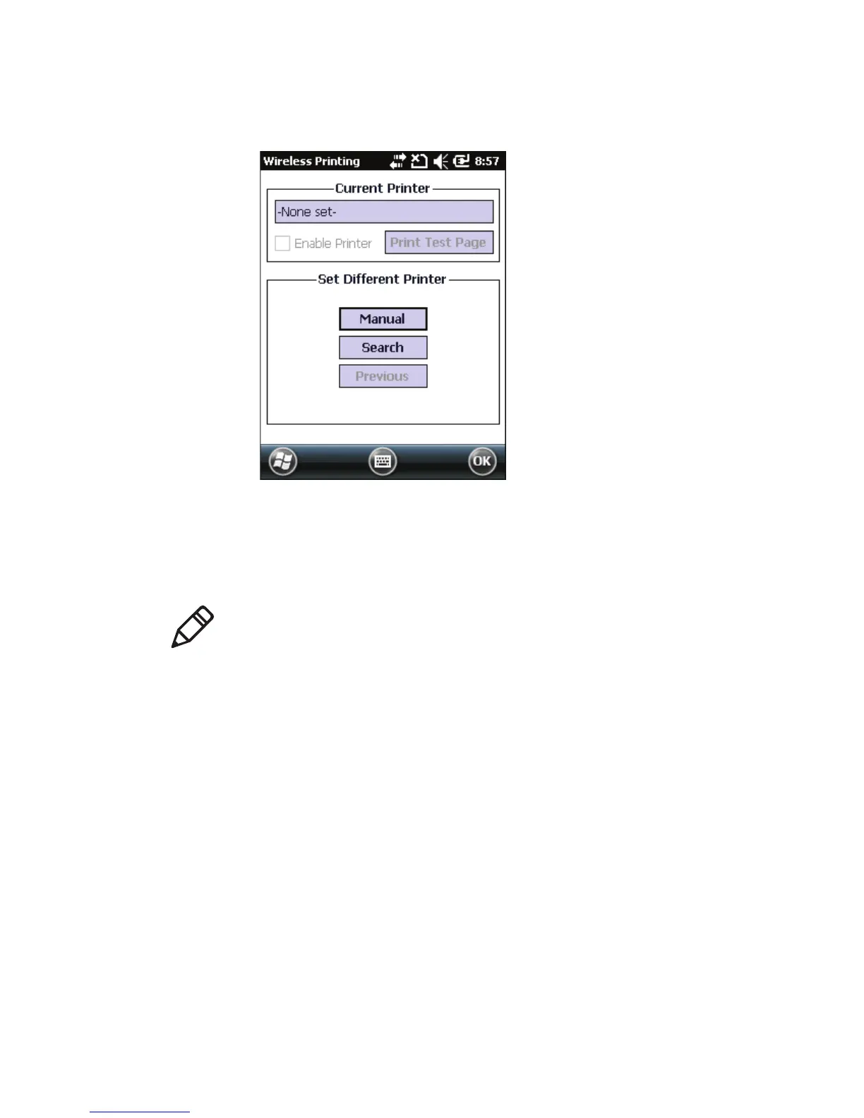 2 Tap Search to find a printer, or tap Manual to enter a device