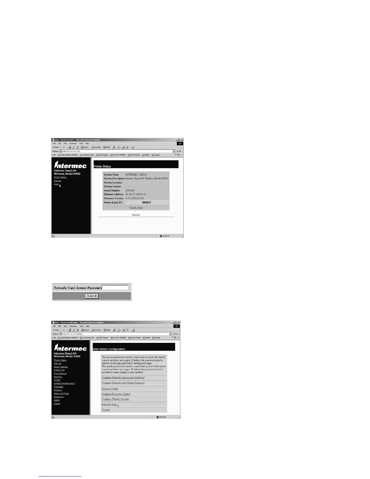 intermec in lowercase in the Network Card Access