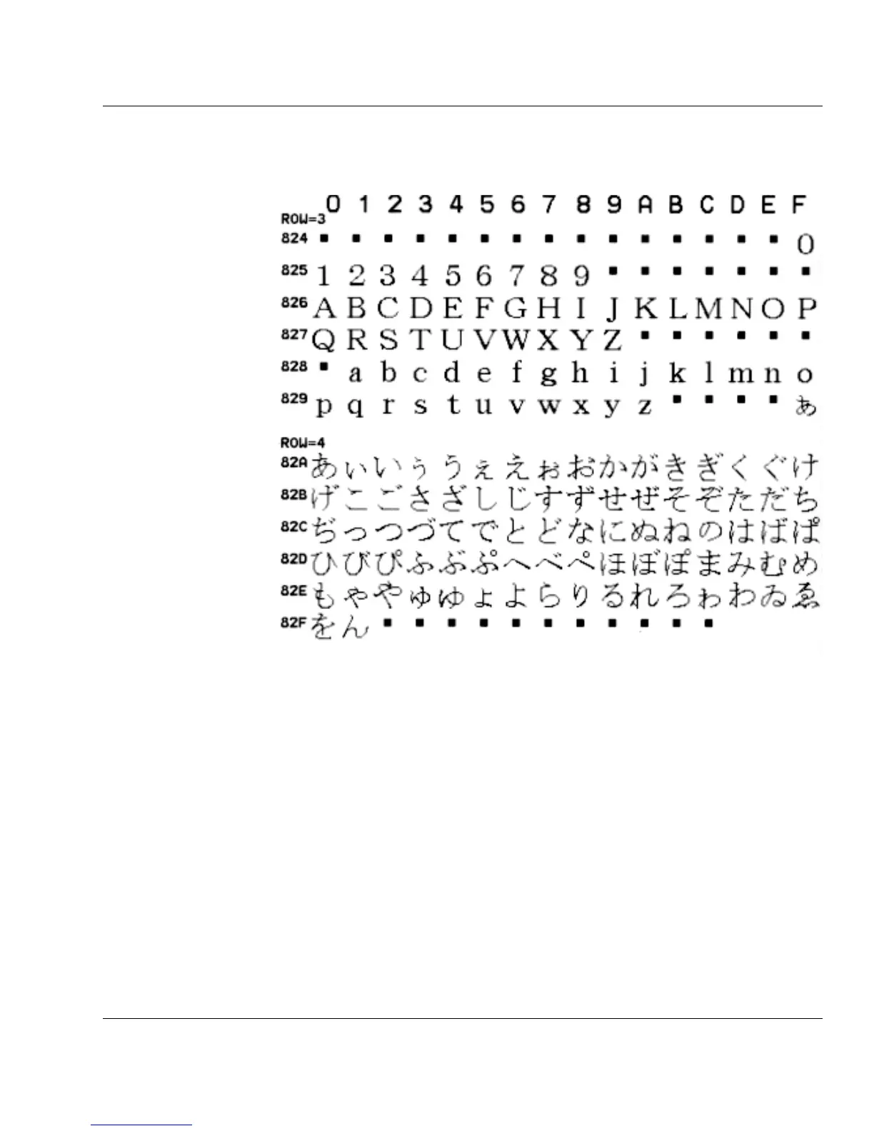 ASCII 8240 82FF hex Japanese Fonts