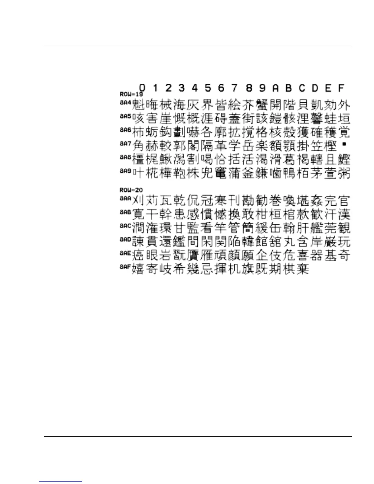 ASCII 8A40 8AFF hex Japanese Fonts