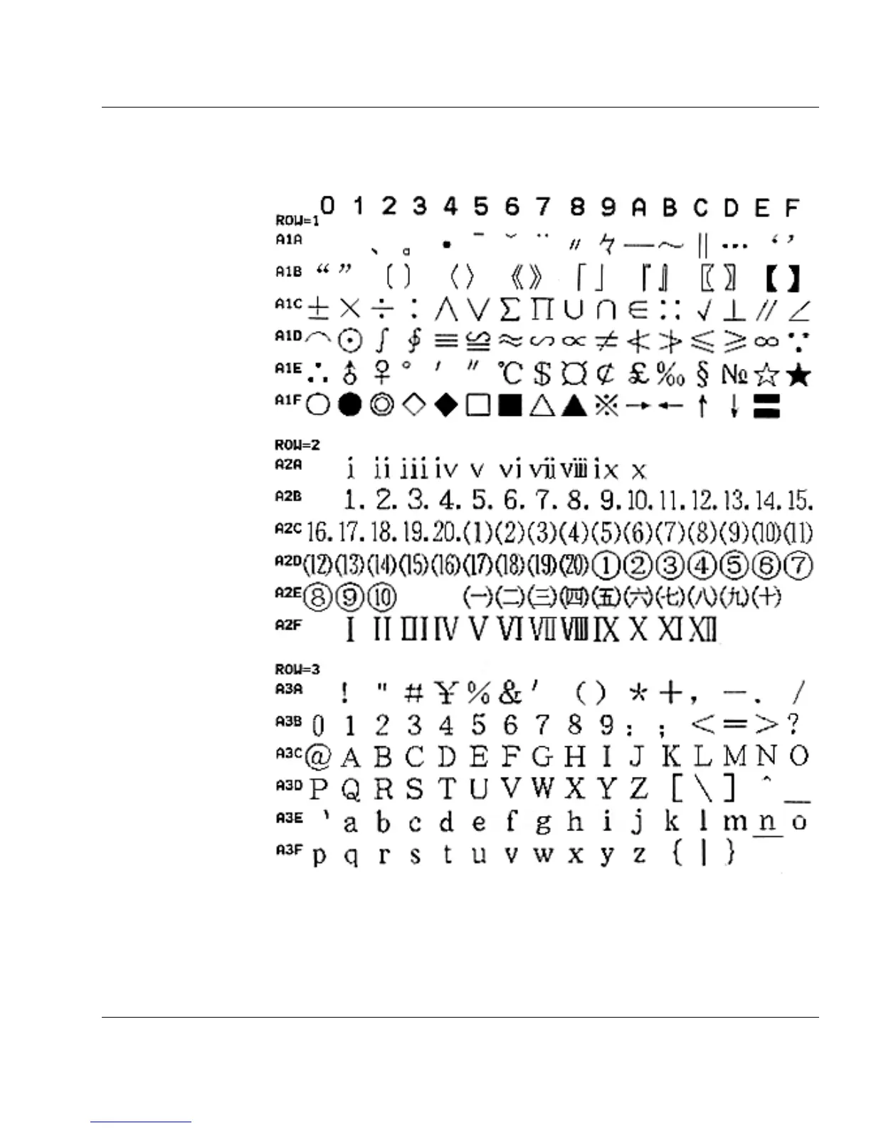 ASCII A1A0 – A3FF hex Chinese GB Fonts