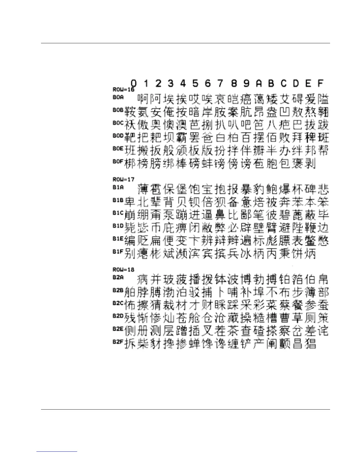 ASCII B0A0 B2FF hex Chinese GB Fonts