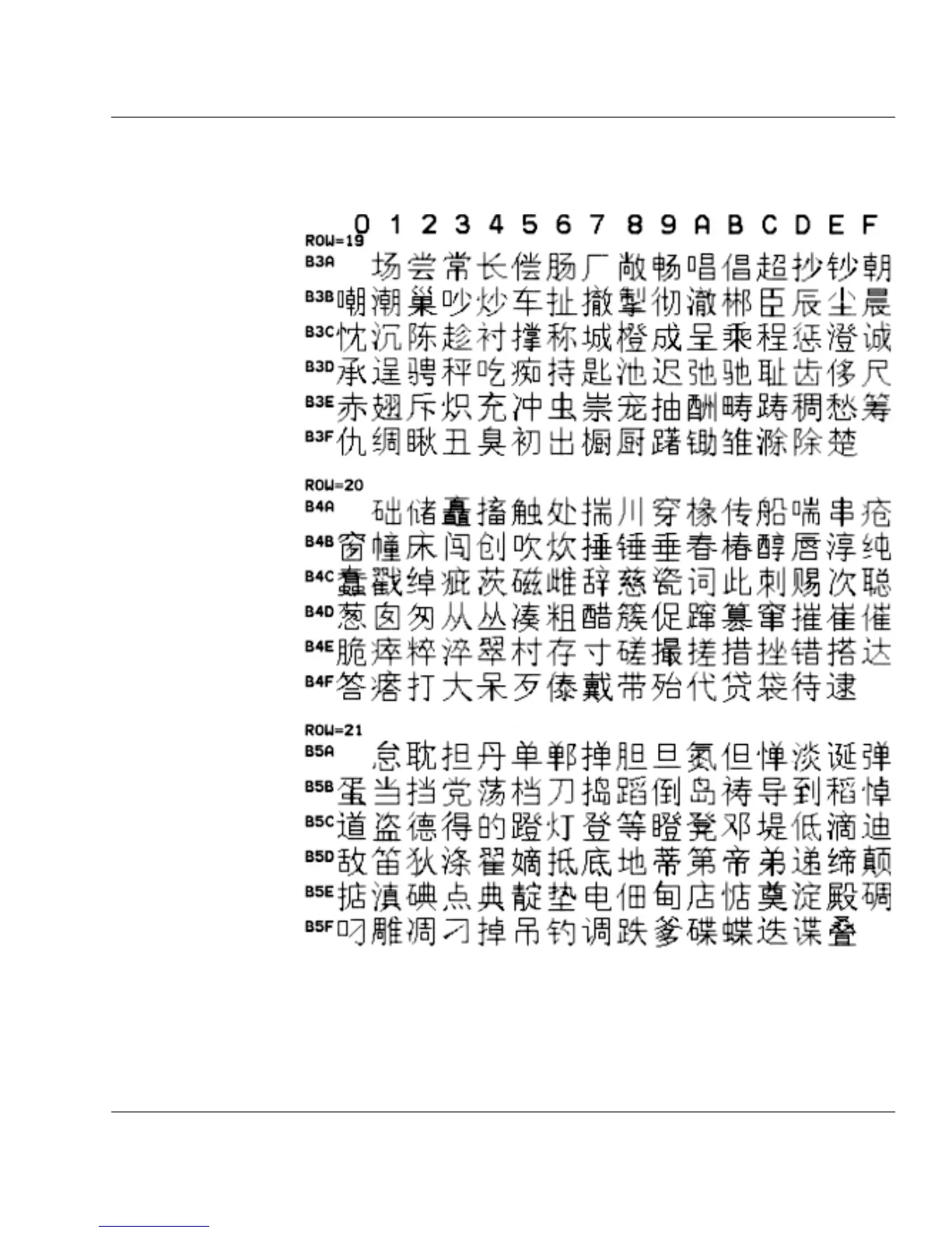 ASCII B3A0 B5FF hex Chinese GB Fonts