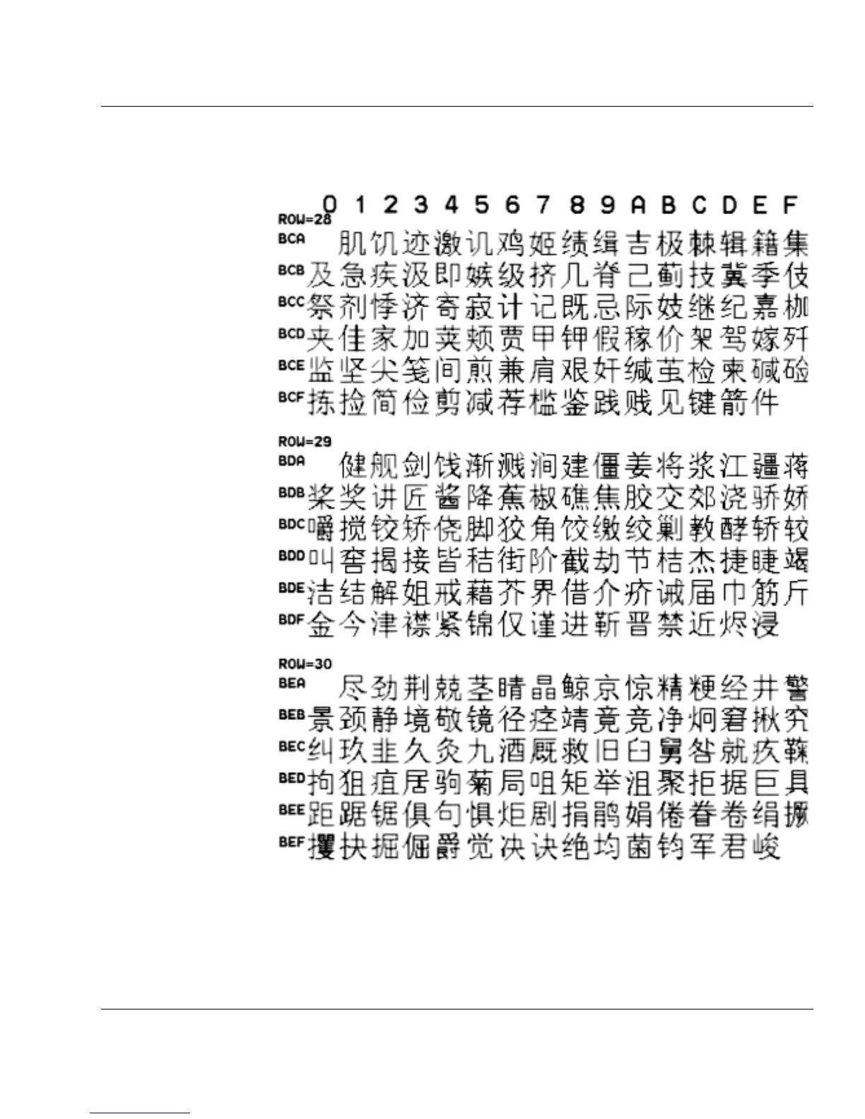 ASCII BCA0 BEFF hex Chinese GB Fonts