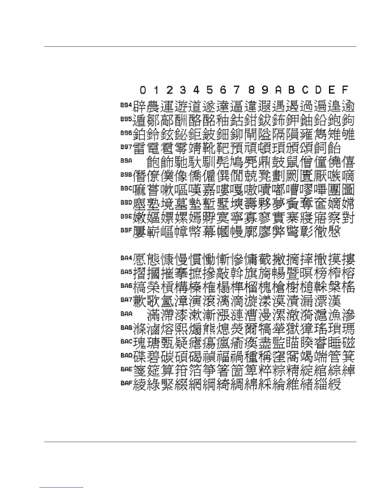 ASCII B940 BAFF hex Chinese BIG-5 Fonts