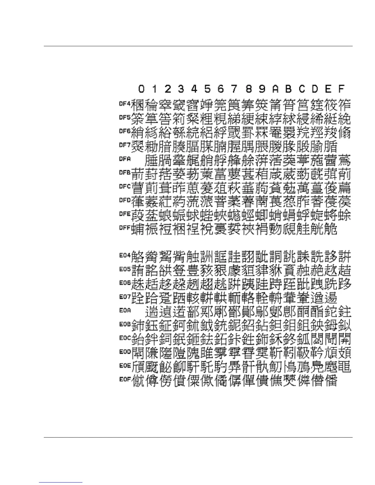 ASCII DF40 E0FF hex Chinese BIG-5 Fonts