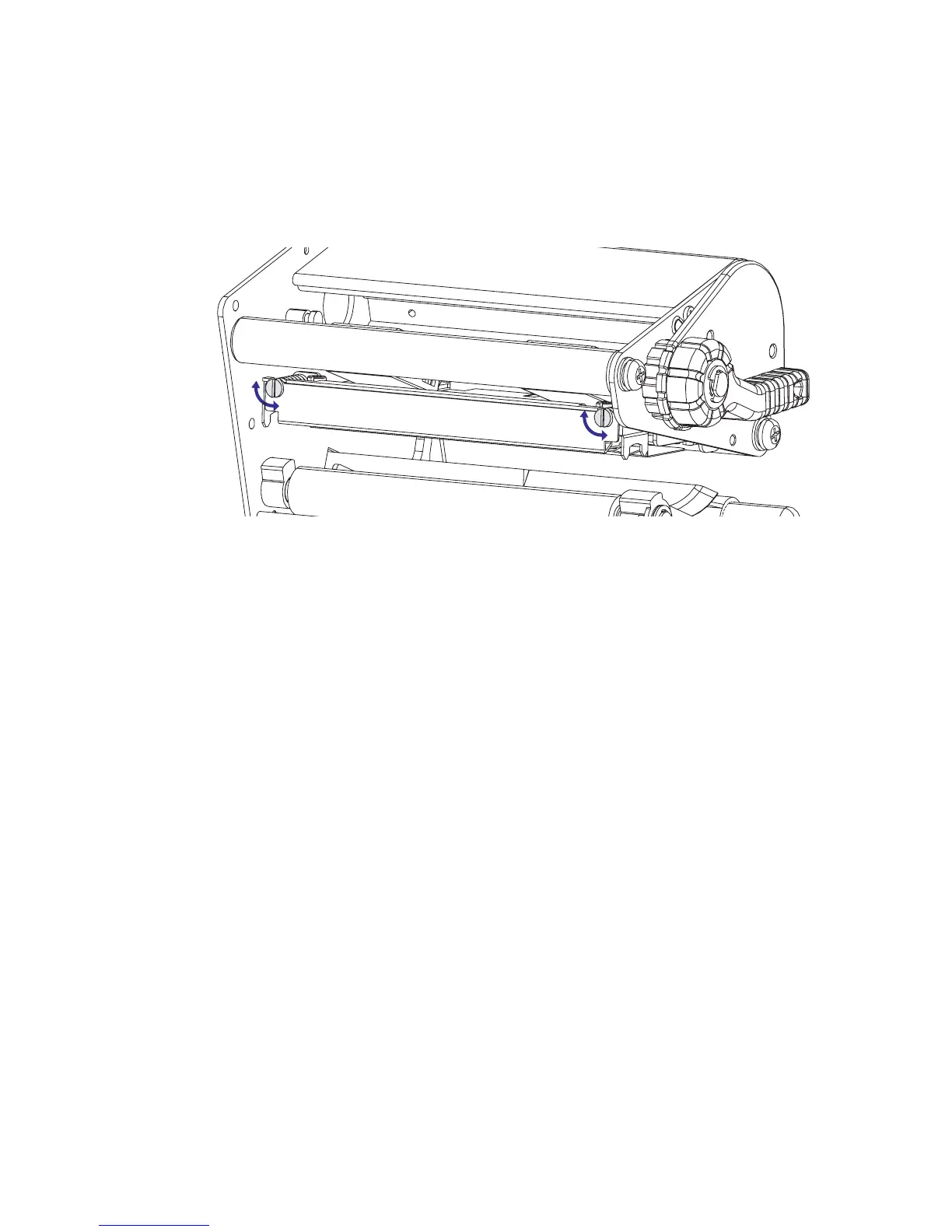 5 Turn both screws at the front of the printhead carefully clockwise a
