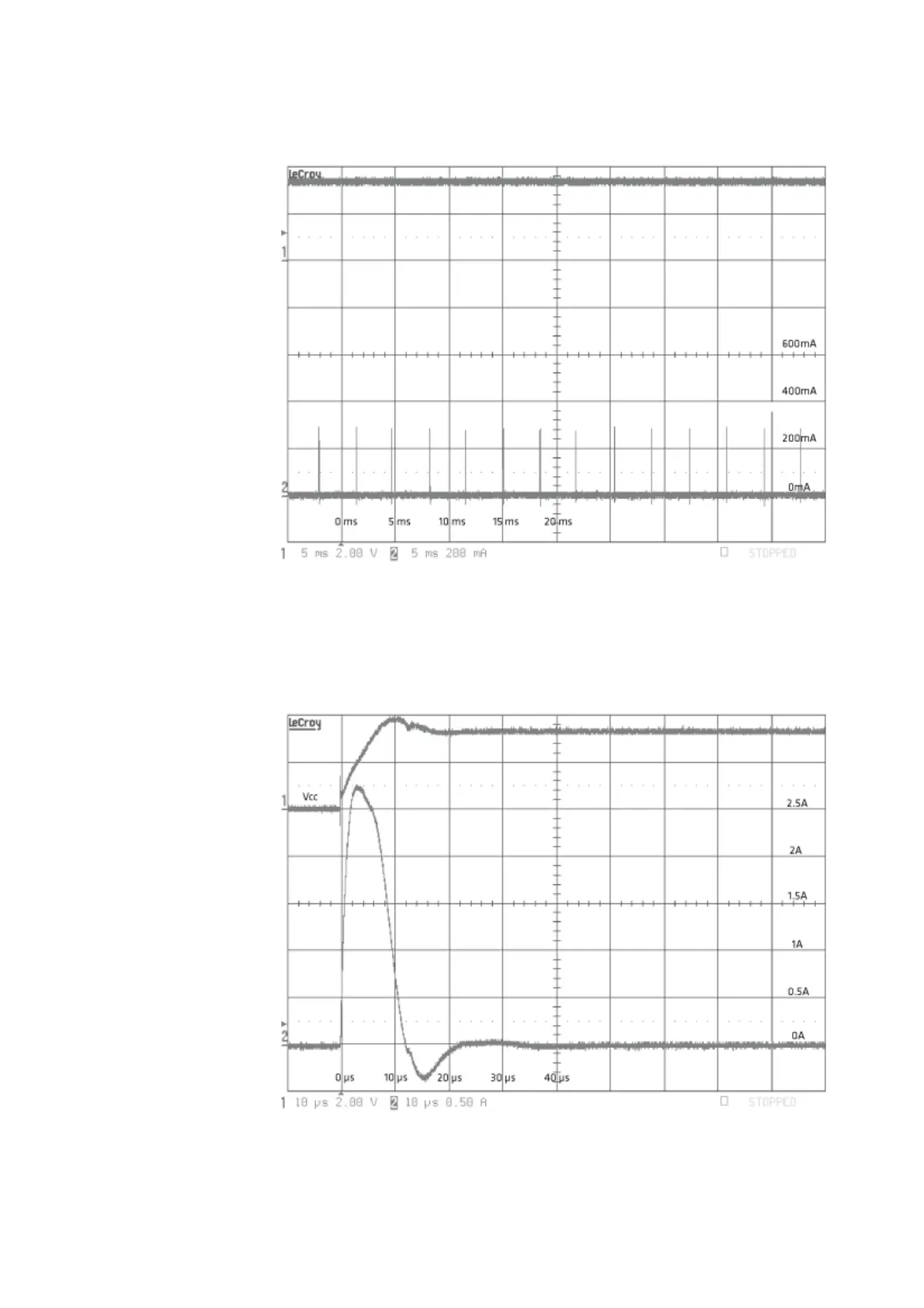 EA30 + ED40 Power-Up with Vcc Inrush Current (USB): Power enable and trigger low.