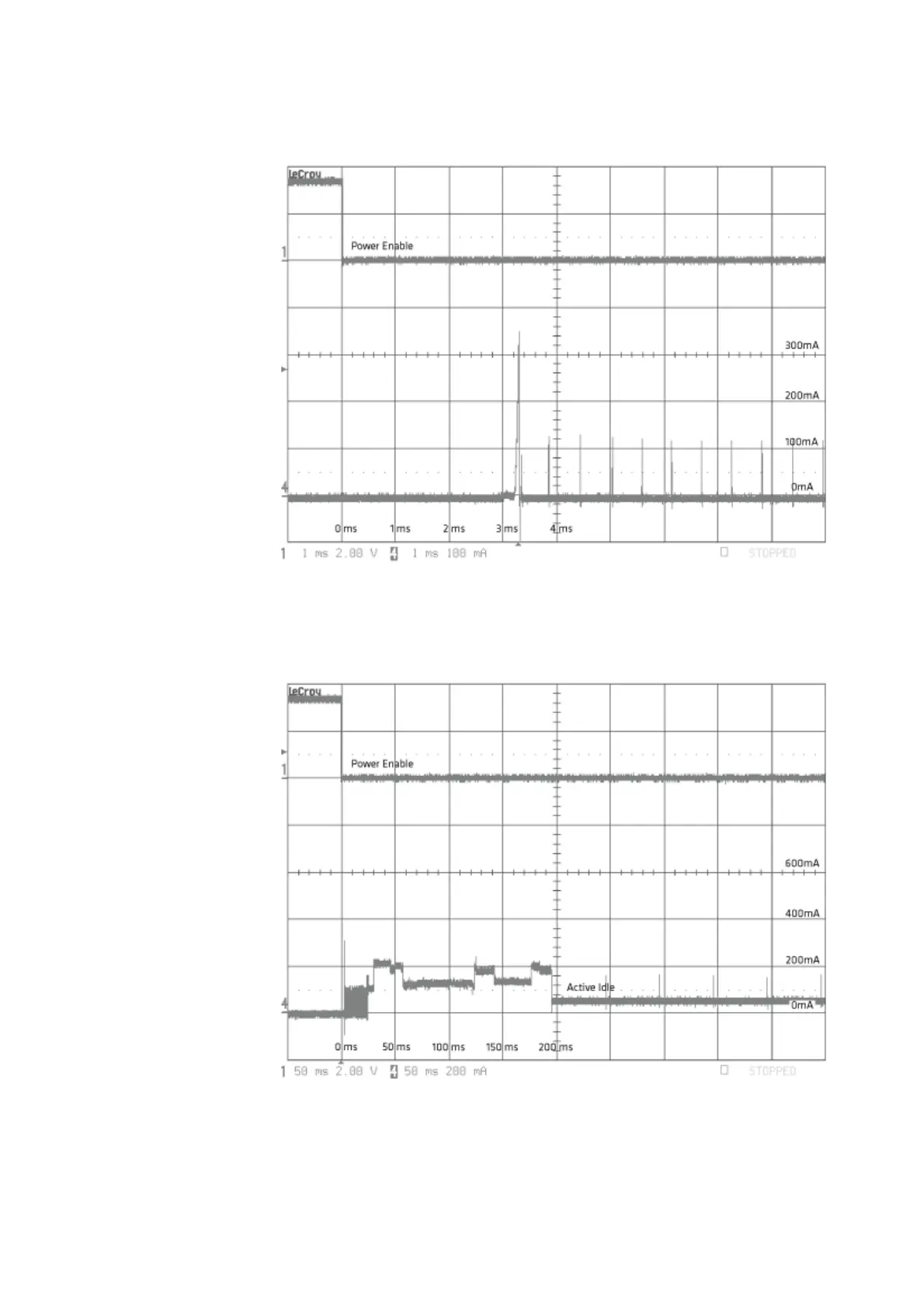 EA11 + ED40 Power-Up (Vcc) Inrush Current to Active Idle (RS-232): Power enable low,