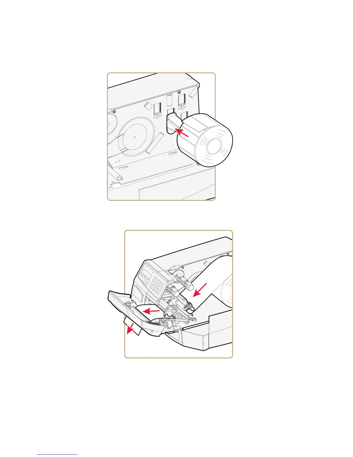 6 Route the media through the print mechanism and cutter. Then,