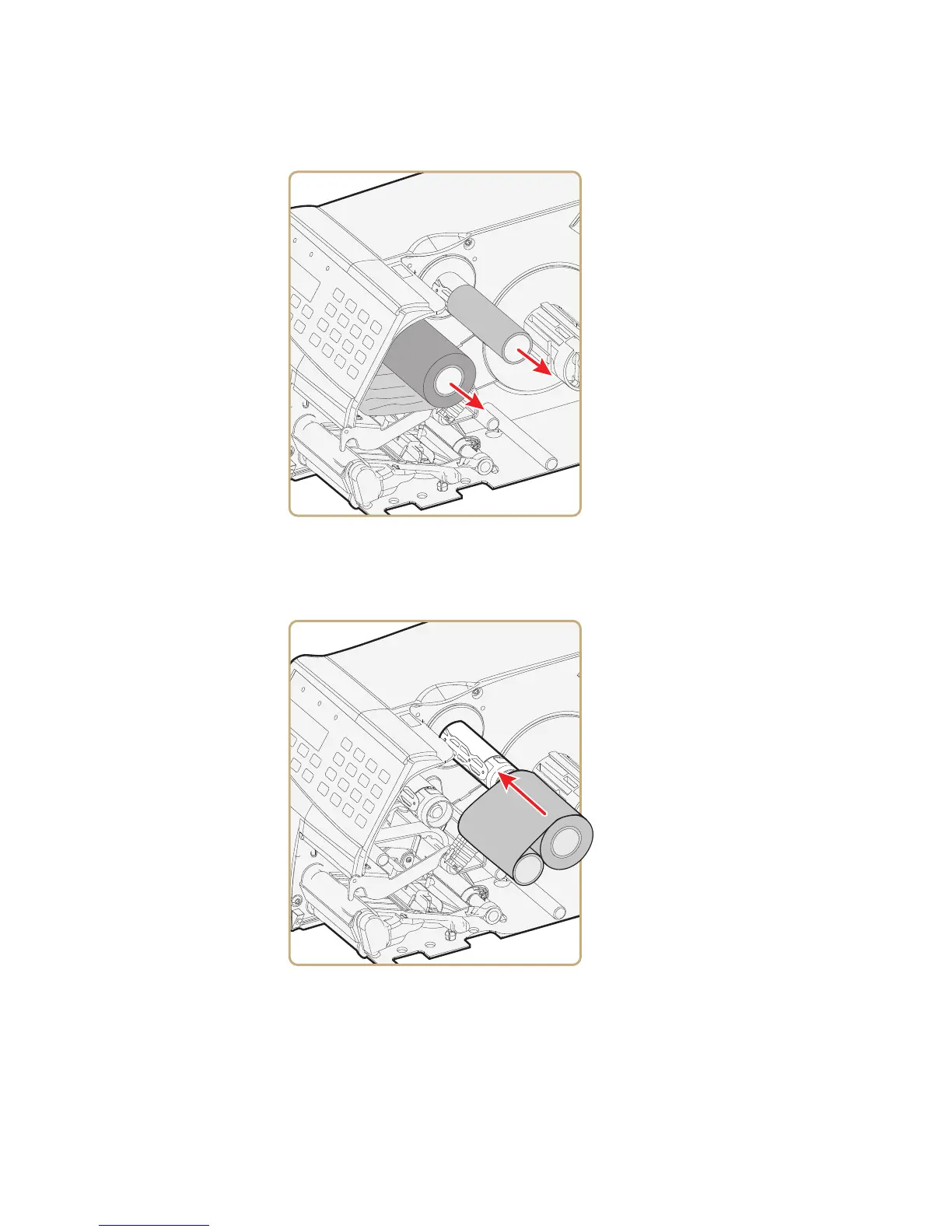 4 Slide the ribbon roll onto the supply hub so the ink-coated side