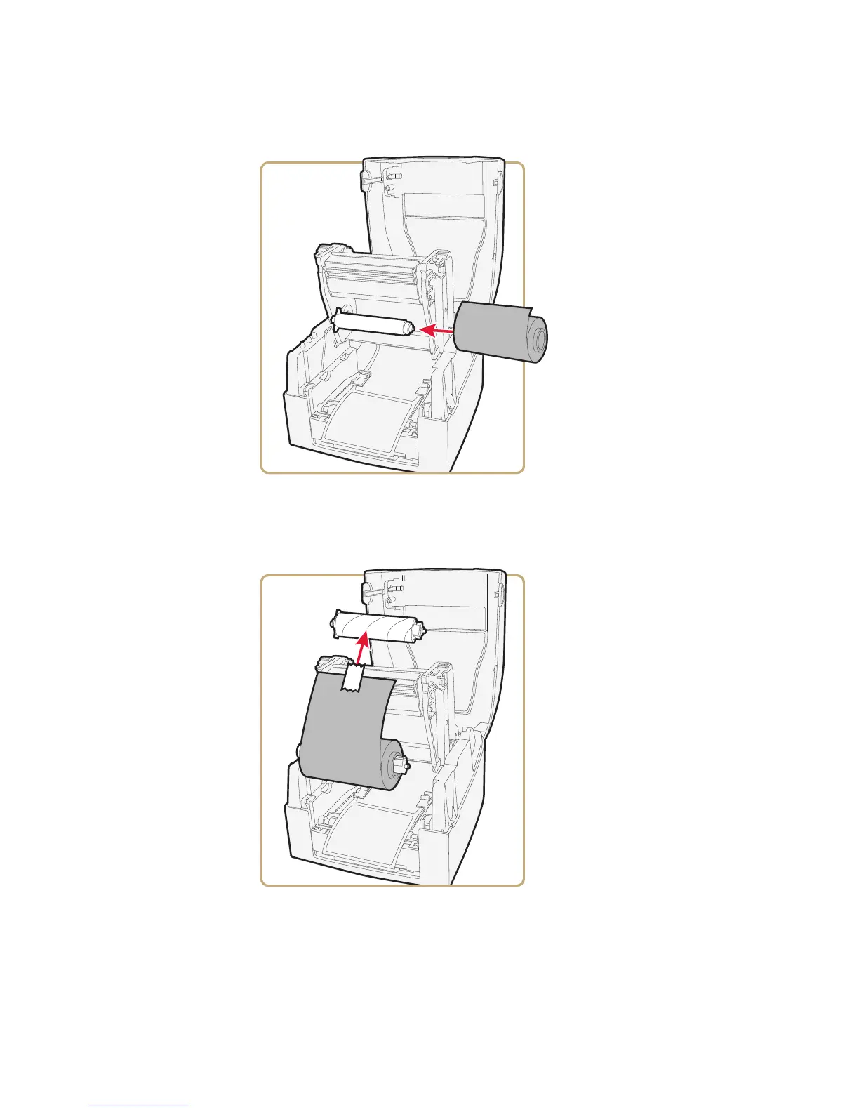 4 Insert a new transfer ribbon roll onto the ribbon supply shaft.