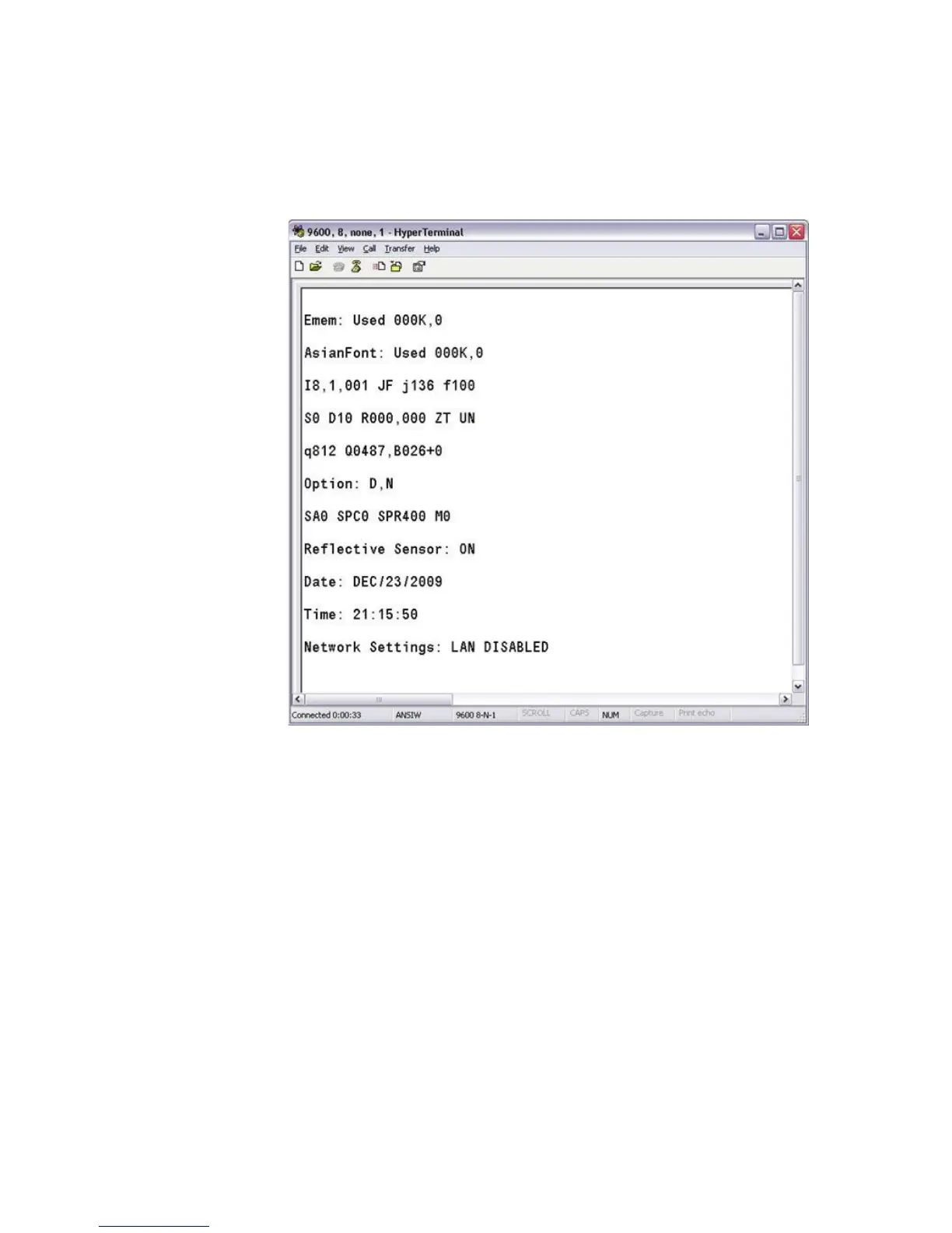 3 To verify that the USB port is enabled, type UQ and press Enter.