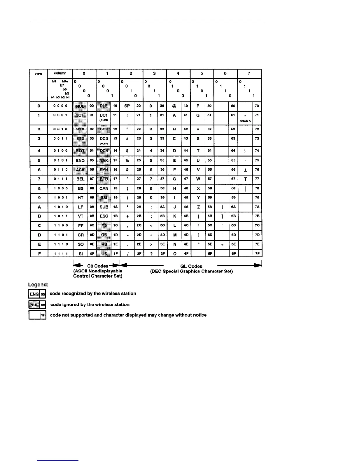 Intermec VT220/ANSI - Table 8-5 Special Graphics Character Set