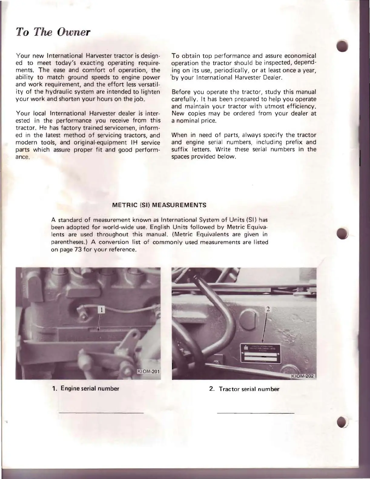 and engine serial numbers,